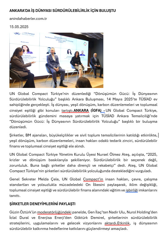 Ankara’da İş Dünyası Sürdürülebilirlik İçin Buluştu