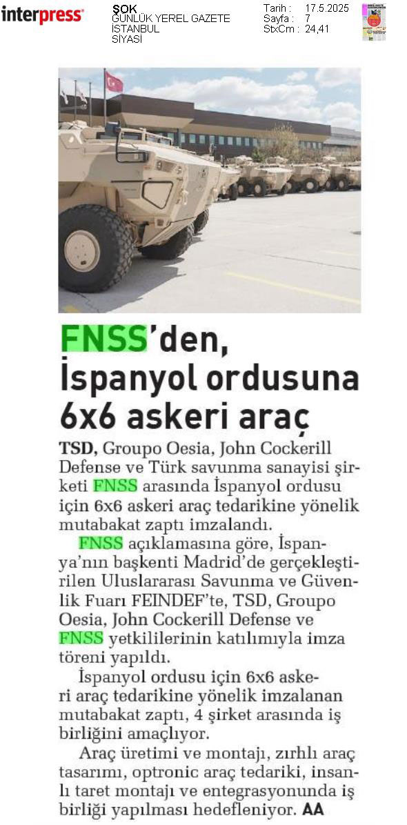 FNSS, İspanyol Ordusu için 6×6 Askeri Araç