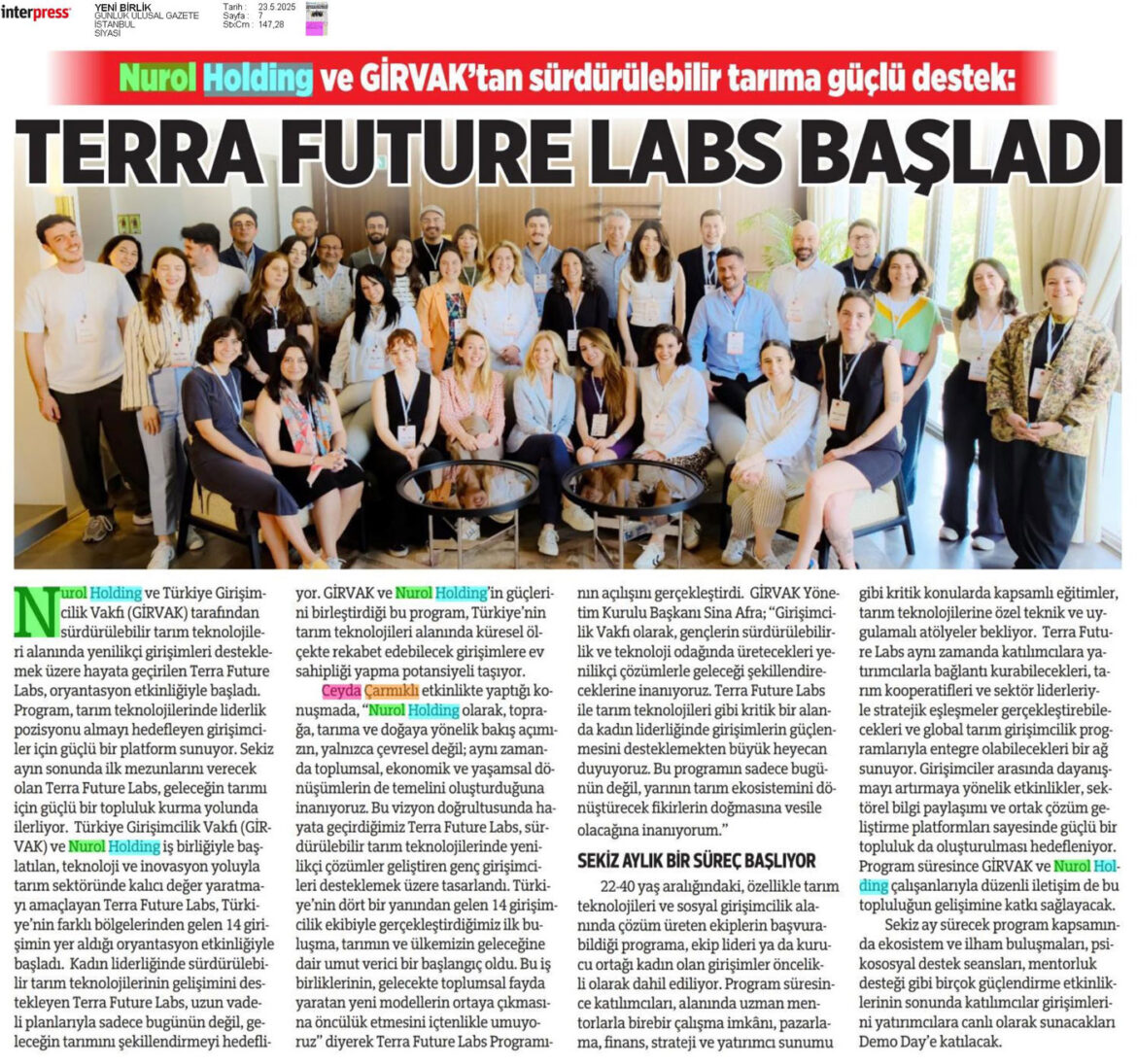 Nurol Holding ve GİRVAK’tan Sürdürülebilir Tarıma Güçlü Destek: Terra Future Labs Başladı