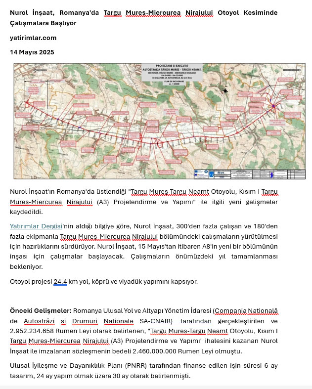 Nurol İnşaat, Romanya’daki A3 Otoyolu Projesinde Çalışmalara Başladı
