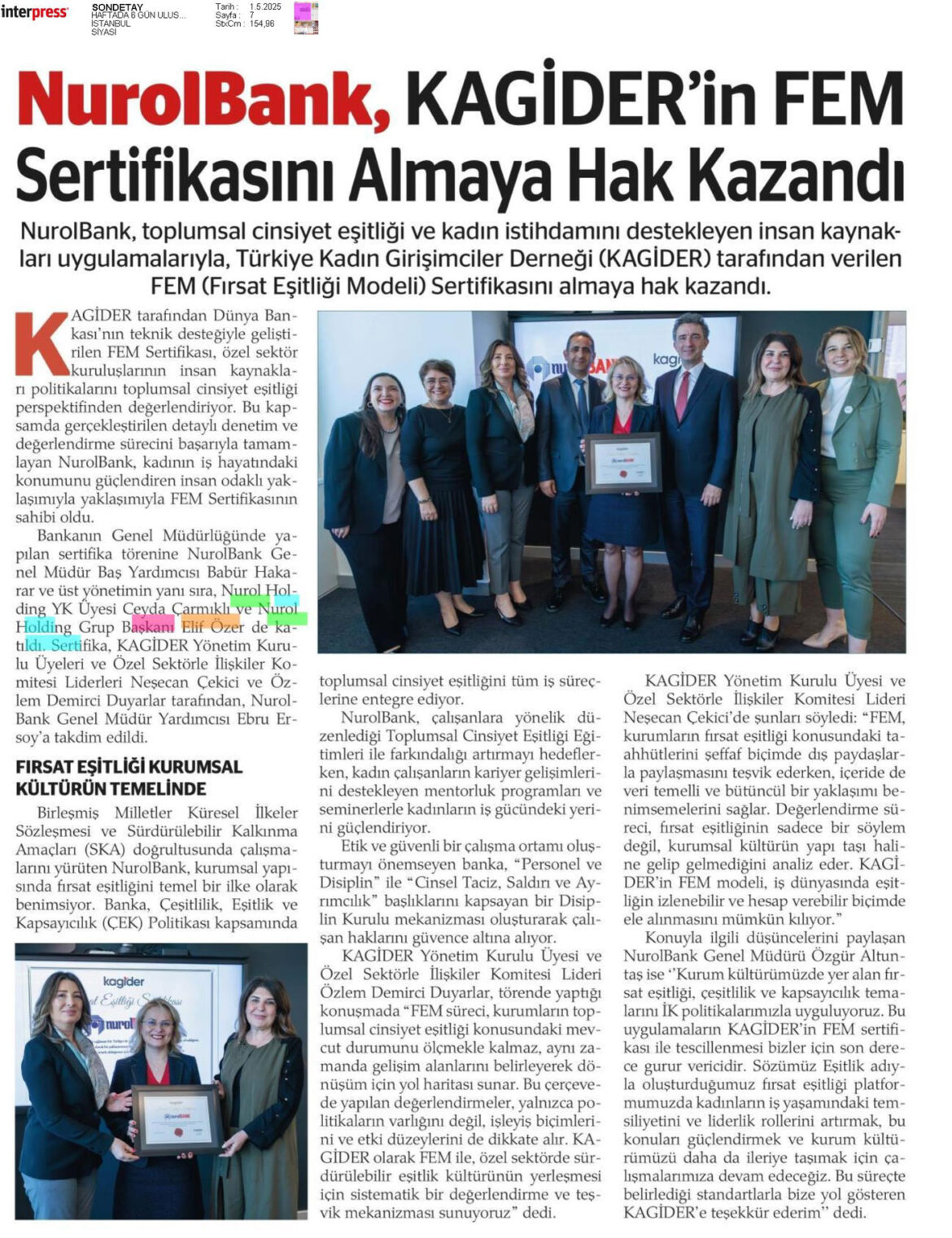NurolBank, KAGİDER’in FEM Sertifikasını Almaya Hak Kazandı