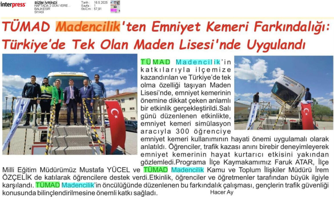 TÜMAD Madencilik’ten Emniyet Kemeri Farkındalığı