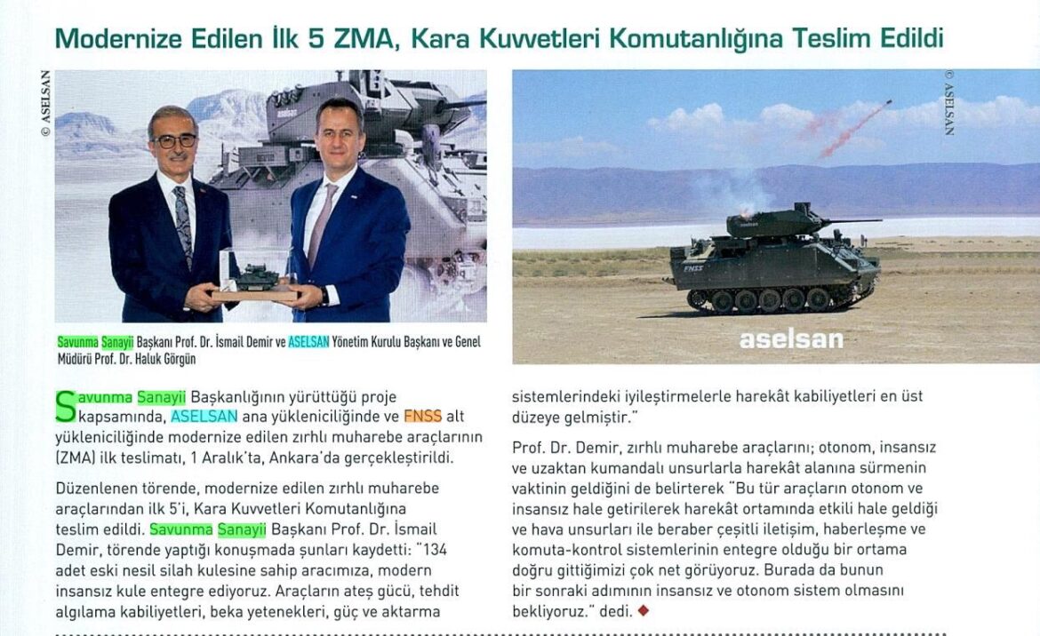 Modernize Edilen İlk 5 ZMA, Kara Kuvvetleri Komutanlığına Teslim Edildi