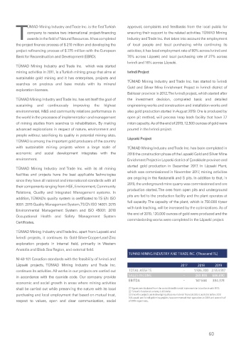 Lâpseki projects, TÜMAD Mining Industry and Trade Inc. 2017 2018 2019