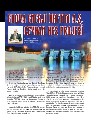 Şirketimiz, Yönetim Kurulu’nda dönüşümlü olarak içerisinde Ceyhan Nehri üzerinde Aslantaş Barajı ile