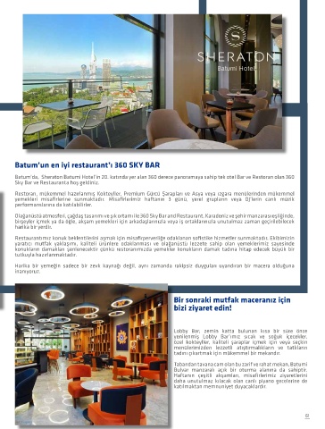 Batum’da, Sheraton Batumi Hotel’in 20. katında yer alan 360 derece panoramaya sahip tek otel Bar ve Restoran olan 360